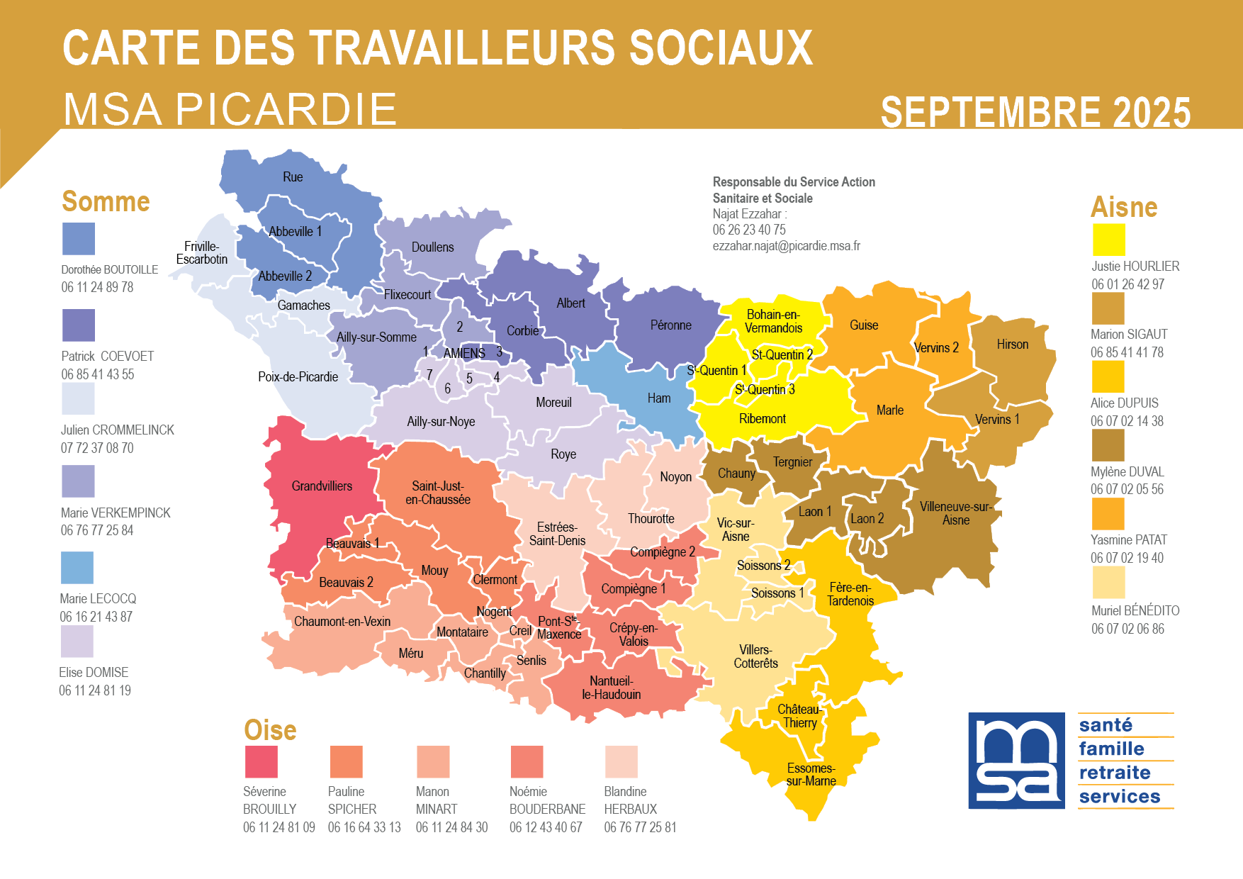 L'action sociale de la MSA de Picardie complète l'aide apportée à la population agricole au titre de la protection sociale légale et contribue à l'amélioration des conditions de vie de ses adhérents en agissant à la fois auprès des personnes et sur le milieu rural.